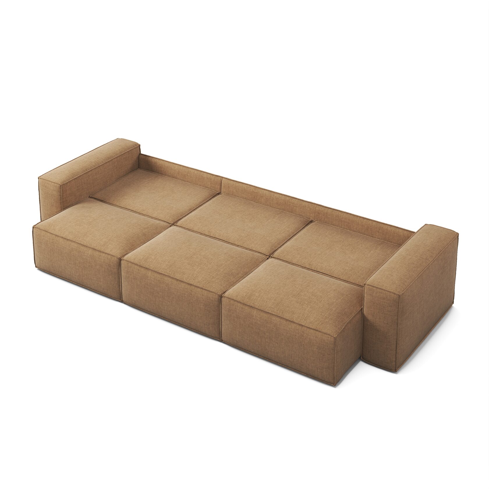 У модели исключительно прочный каркас из многослойной экологичной березы и массива древесины. Такая конструкция обеспечивает устойчивость к механическим нагрузкам и долгий срок службы, исключает скрипы и деформации даже при интенсивном использовании на протяжении нескольких лет. А главное, диван подходит для пространства любой площади, ведь изготавливается по индивидуальным размерам. Доступен формфактор 280 см (20-80-80-80-20) и любые другие варианты.