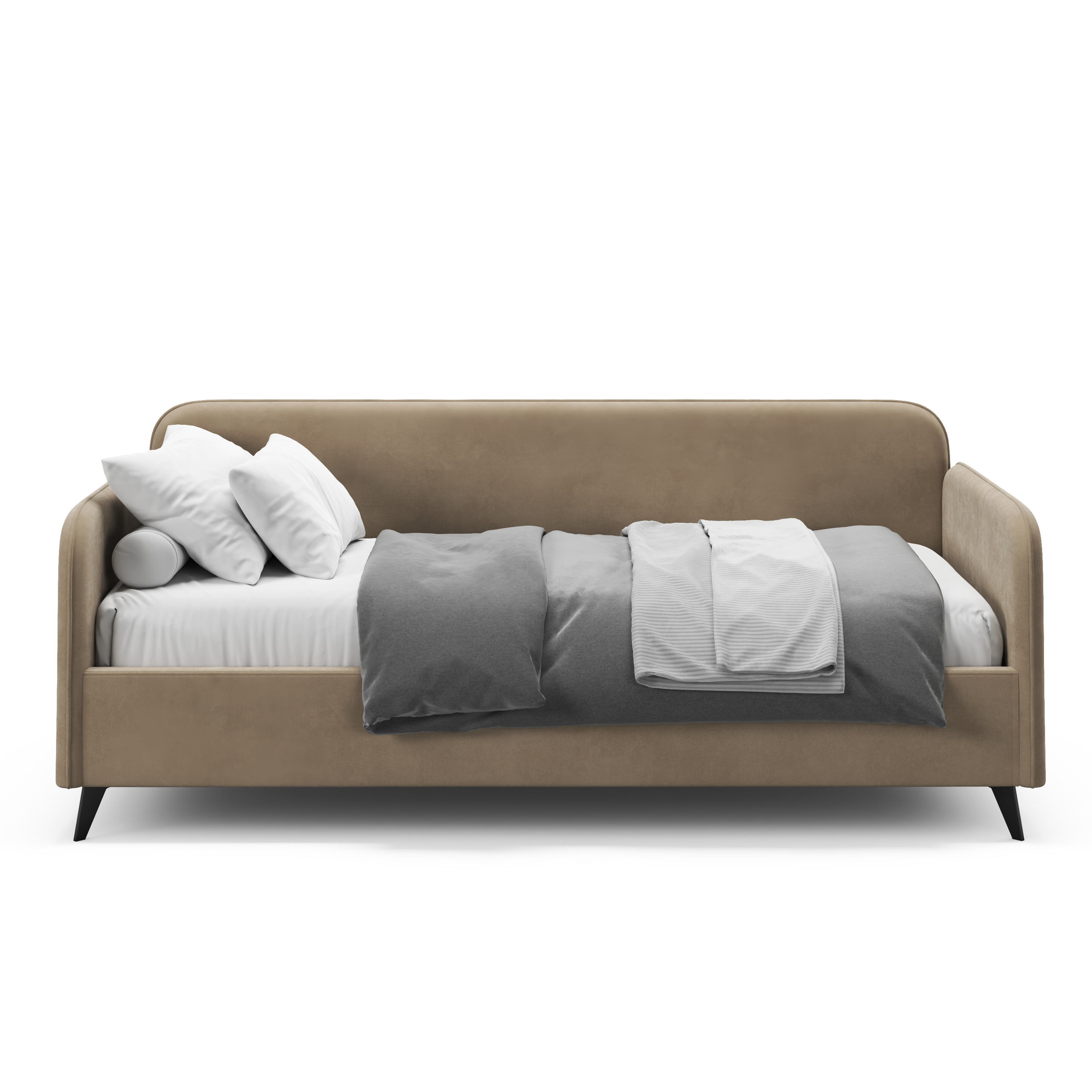 - Ножки придают конструкции легкость, а лаконичные линии делают кровать универсальной для современных интерьеров.