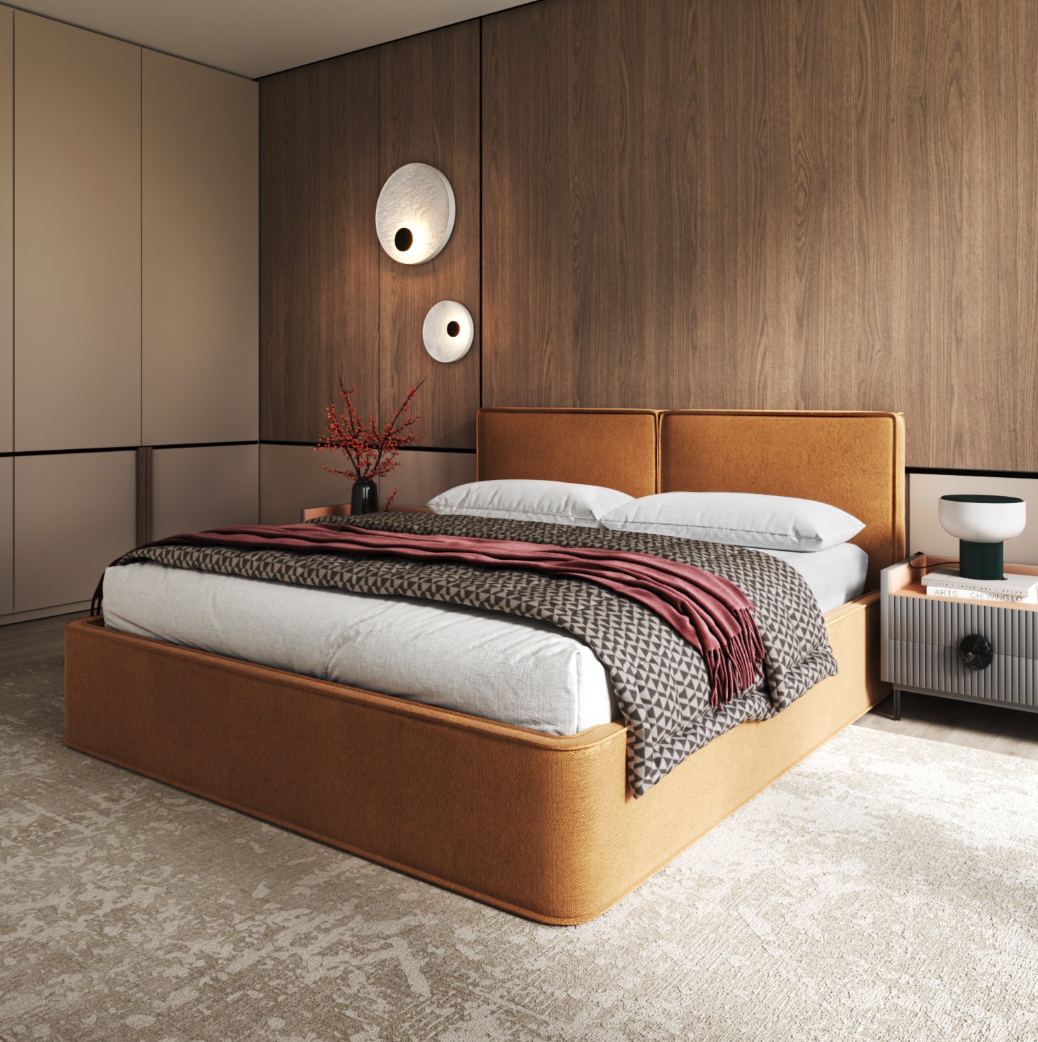 - Классические формы и выразительные ножки подчеркивают основательность кровати, а продуманные пропорции не перегружают пространство.