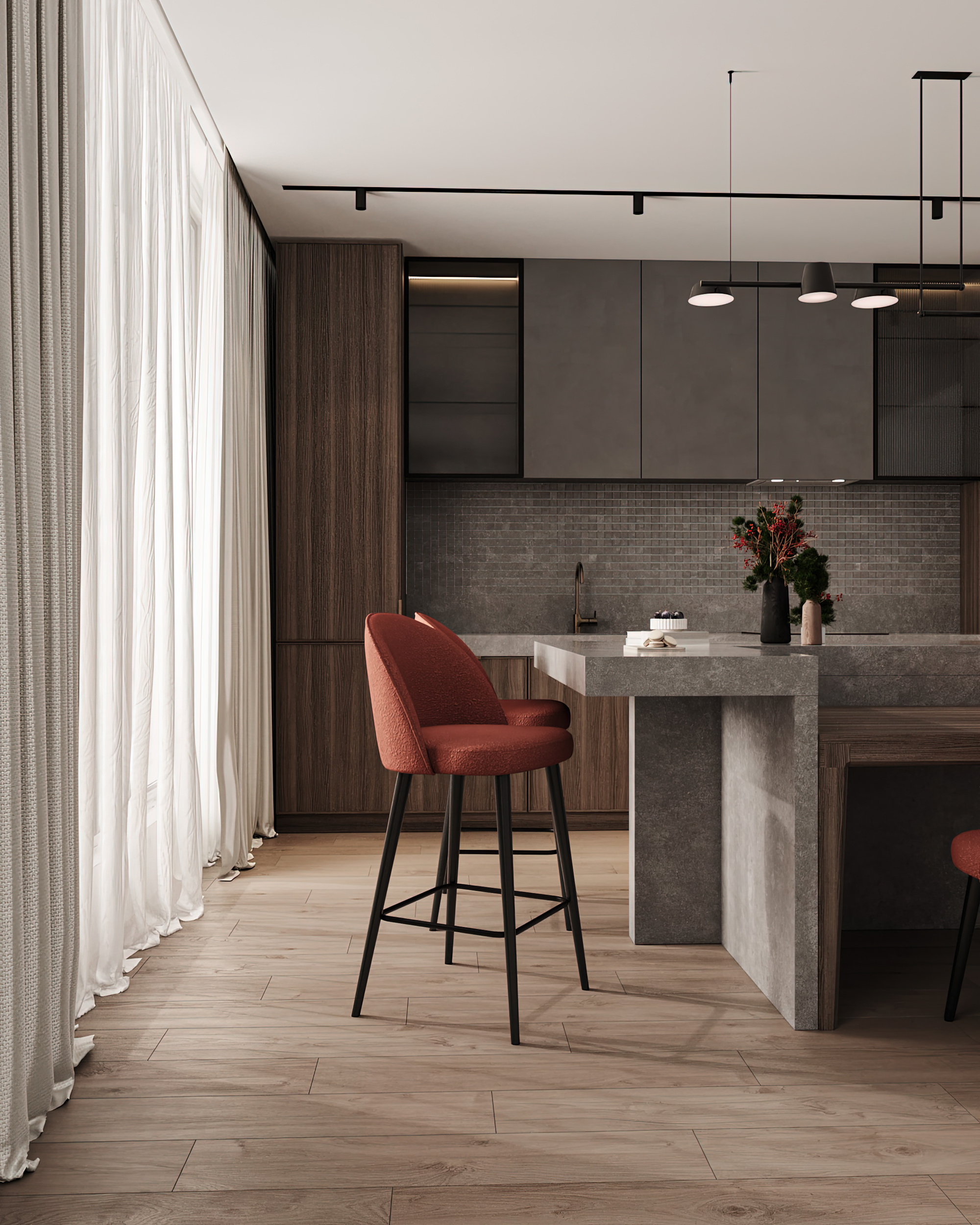 Выверенный шарм, который невозможно не заметить в деликатных и утонченных деталях фактуры. Диалог между оттенками нитей основы и петлями букле метким акцентом оживляет текстуру мебельных форм. А размеренный ритмичный шаг завитков наделяет образ мебели сдержанностью и лаконичностью, но в то же время дарит мягкость и комфорт.
